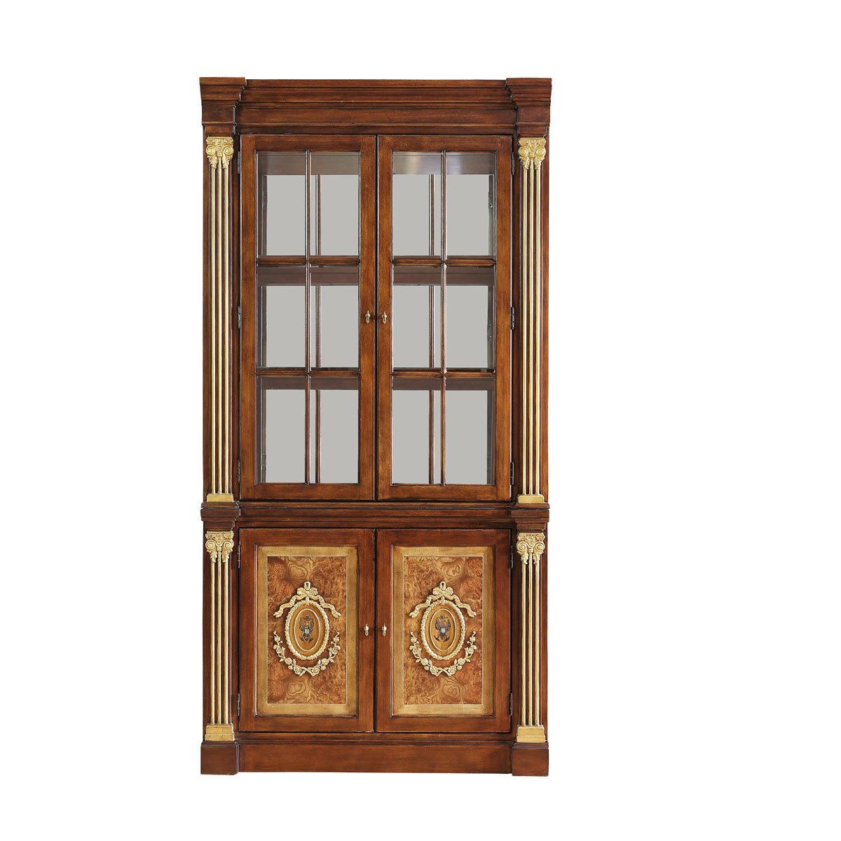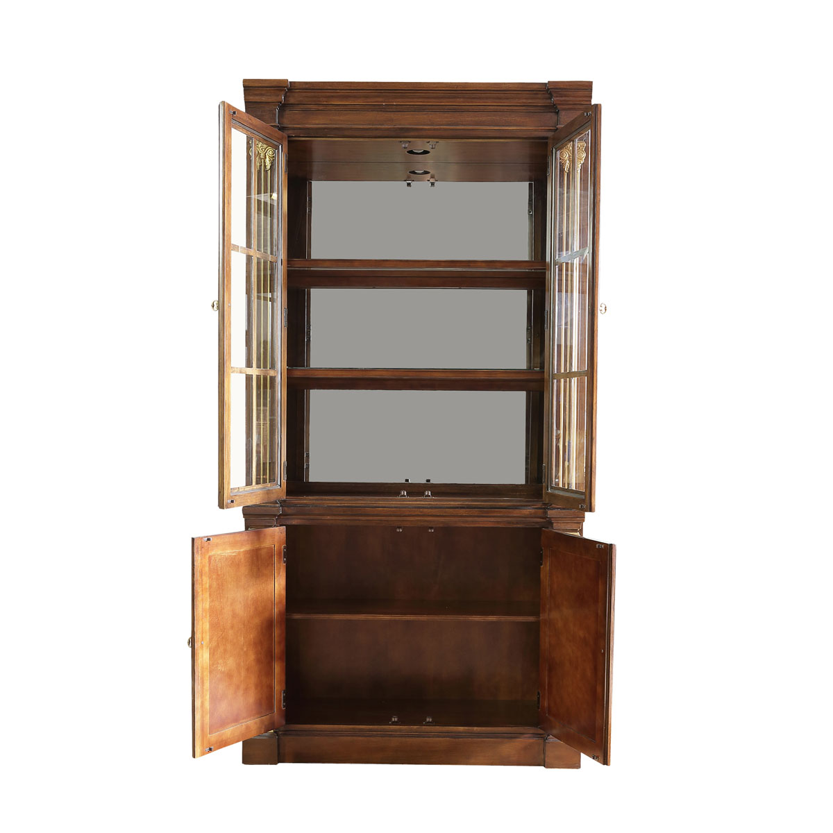 * 上座两块实木框玻璃门,门内有一块实木框可调层板(实木框+钢化玻璃); * 下座两扇实木框门,使用特别设计的包边合页使门更牢固,门内一块可调层板; * 脚底部装有可调脚钉;