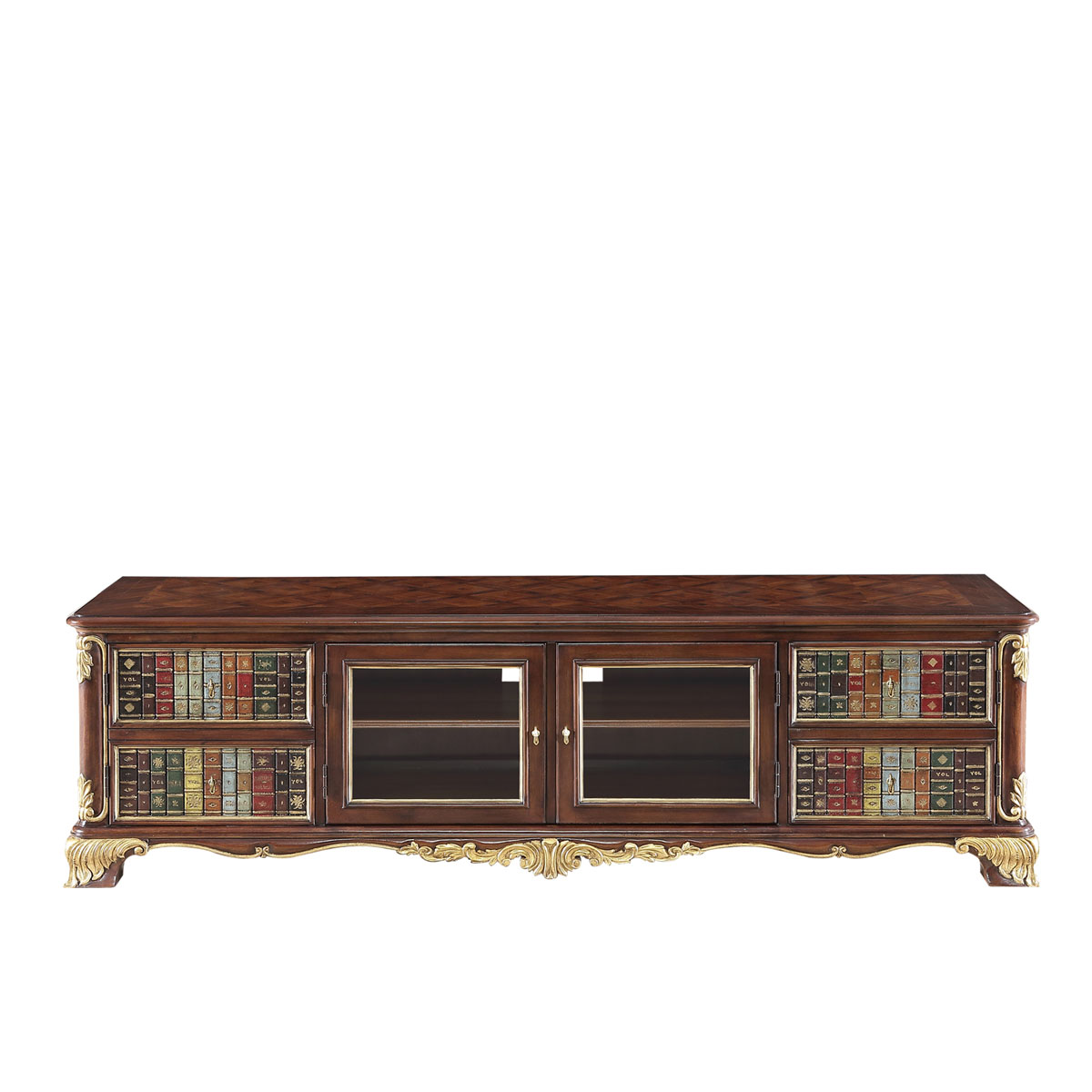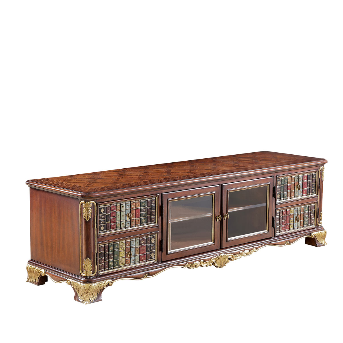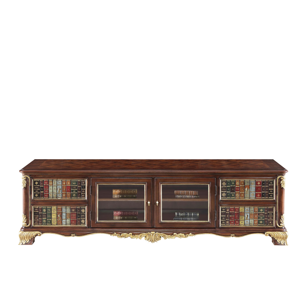 * 书本彩绘饰以仿古效果为豪门大宅增添了几许书卷情韵,配上华贵典雅的卷叶雕刻与金箔贴饰,精彩展现了皇室贵族以读书学习为身份地位象征的荣耀历史。