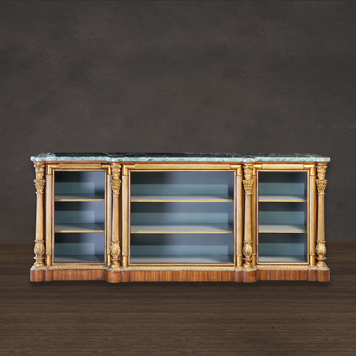 * 这是设计意念来自于英国温莎堡中乔治三世时期的走廊柜。台面采用云石做装饰,借以表达乔治三世王权的坚不可摧。使用以华丽庄严的 Corinthian Order(科林斯式罗马柱)为原型的雕刻柱,配上细腻的木皮贴面和贴金箔工艺,充分展现了英式古董球盟会(中国)·网页登录的绝世芳华。