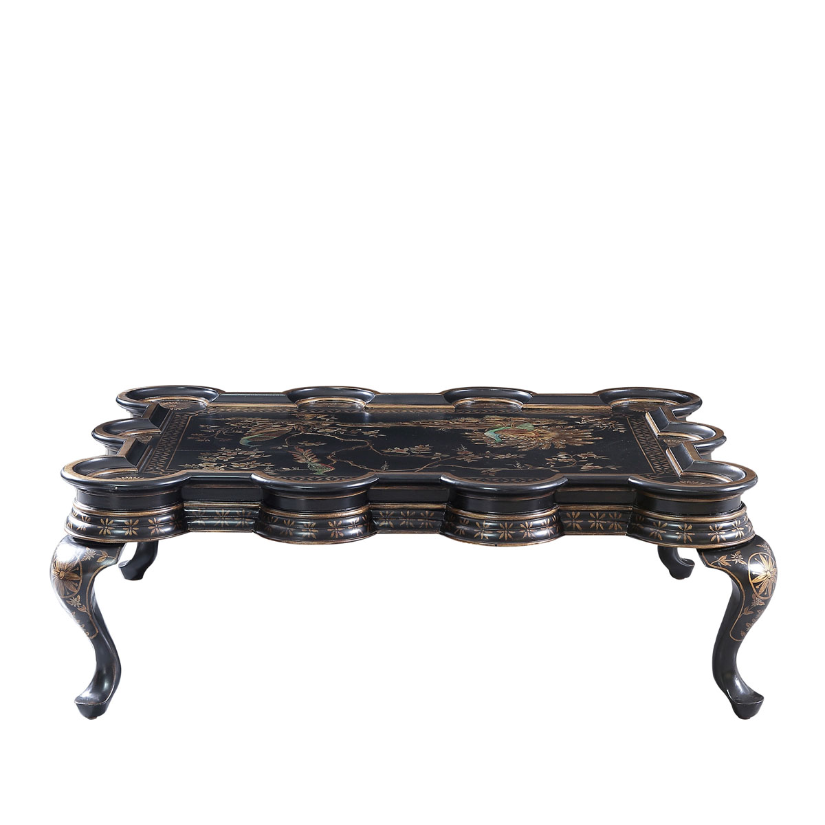 * 为表现英国皇室在中西方文化交流时期的重要地位,以英国温莎堡为设计元素。使用高贵的孔雀彩绘主题和安妮女王时期的弯腿设计,彰显了尊贵的古雅品味。搭配不规则的造型和极具中国情调的黑金色,经典再现了18世纪英国皇室热衷东方元素的家居文化潮流。
