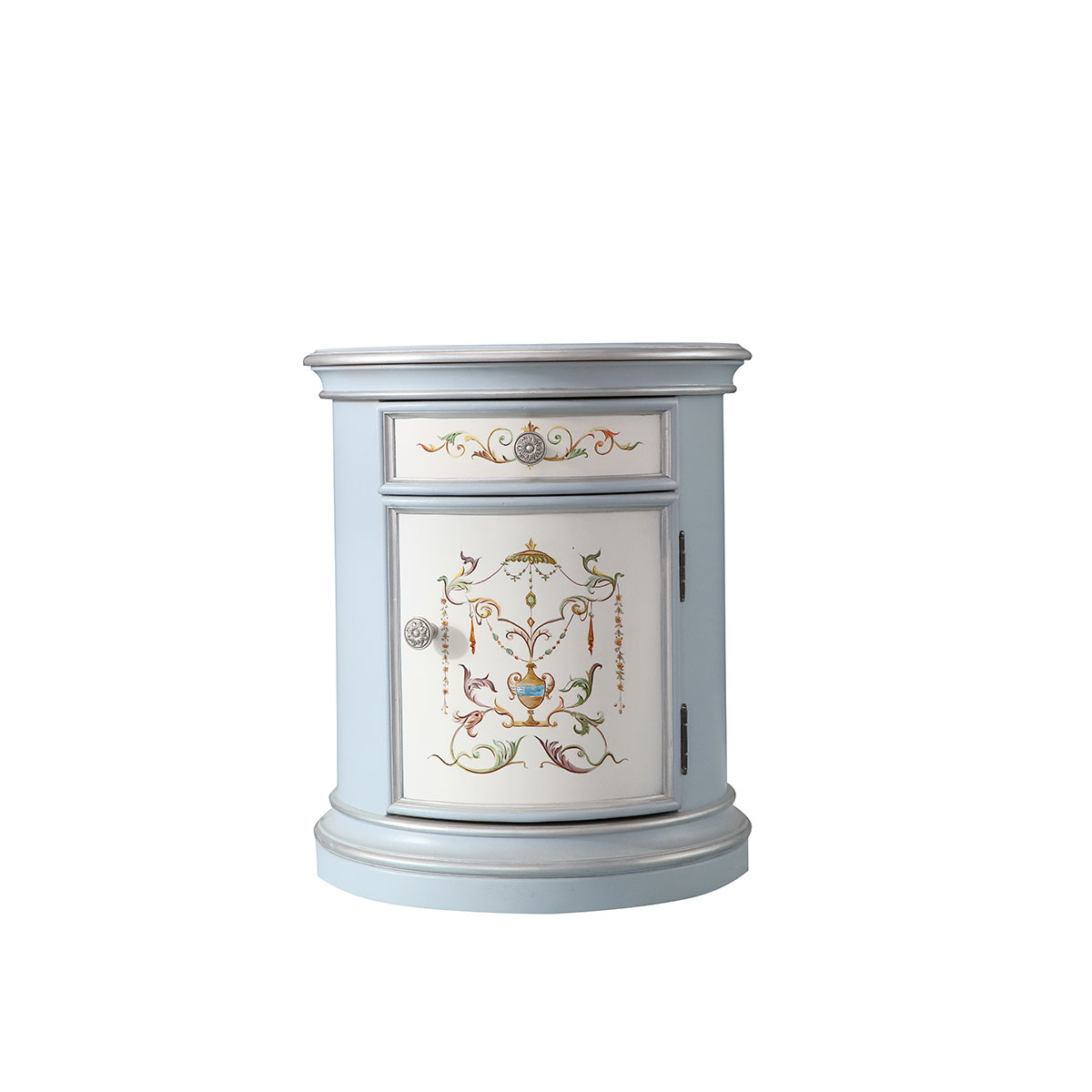 * 一个储物抽斗,底部采用经典的硬木实木滑轨; * 门内一块活动层板,储存空间可自由调节 * 多种木皮拼接工艺;