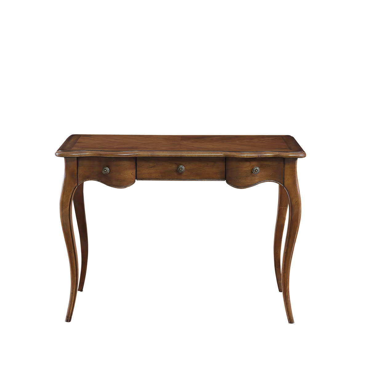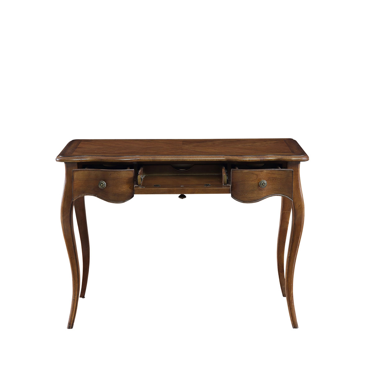 蜿蜒的裙板设计,仿佛林间的溪流,欢快地跳跃着,红棕木色泽古朴,大自然的气息扑面而来,勾勒出一个充满鸟语花香的世外桃源;洛可可风格弯腿设计带来法式的柔美。
