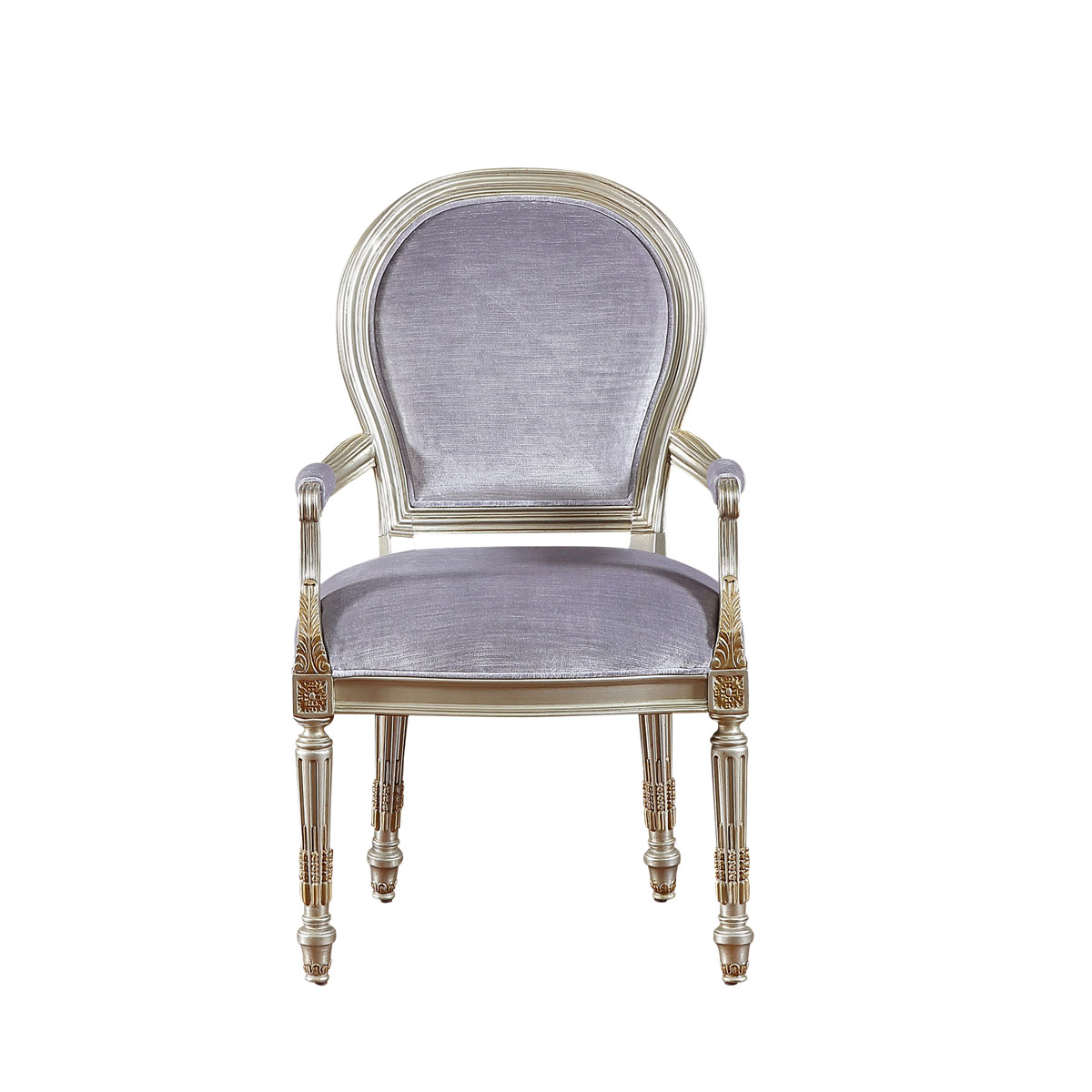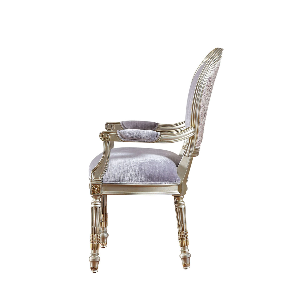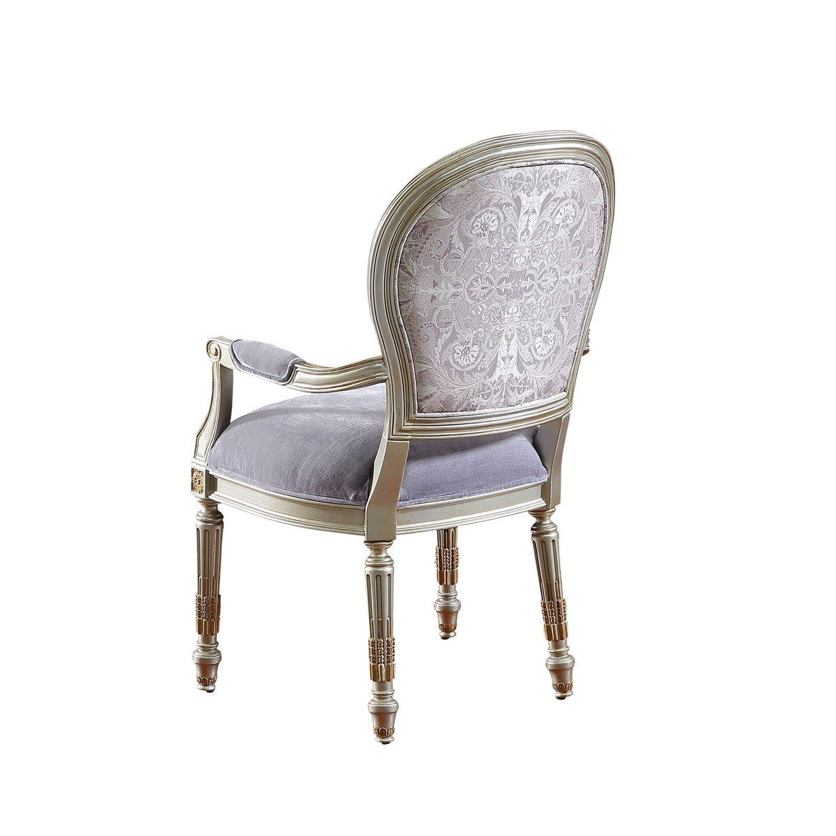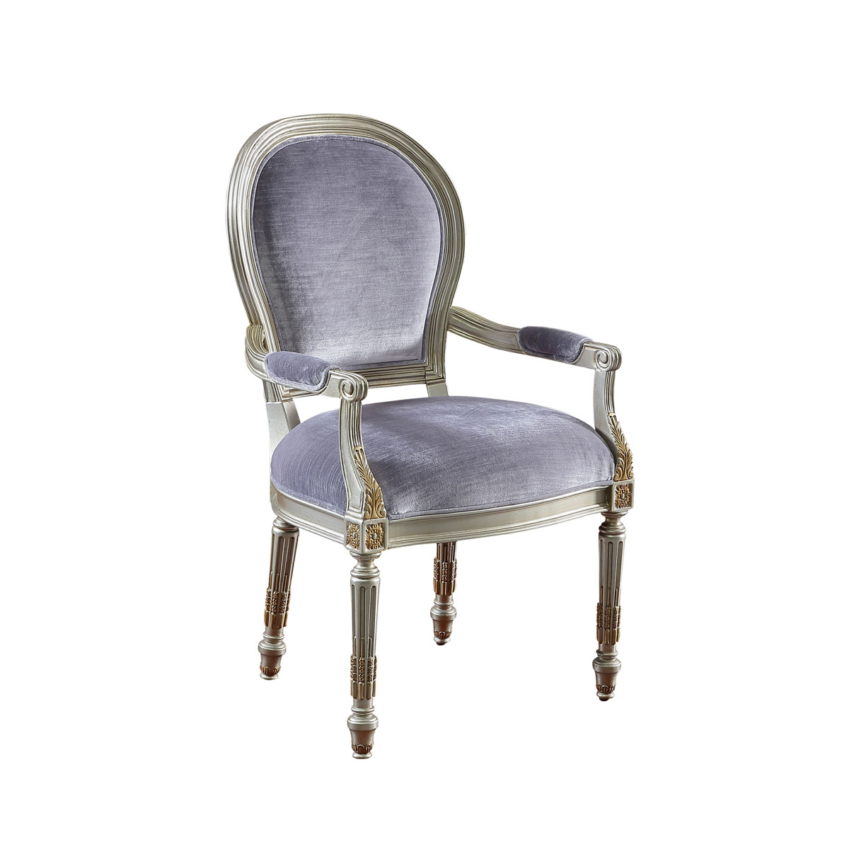 * 参考路易十六时期的古董造型设计,使用小提琴构造椅背和路易十六时期的建筑柱雕刻柱,配以精致的手工雕刻细节和涂金工艺、舒适的布艺面料和厚实柔软的填充物,是豪华系列凡尔赛玫瑰法式扶手椅的特色。