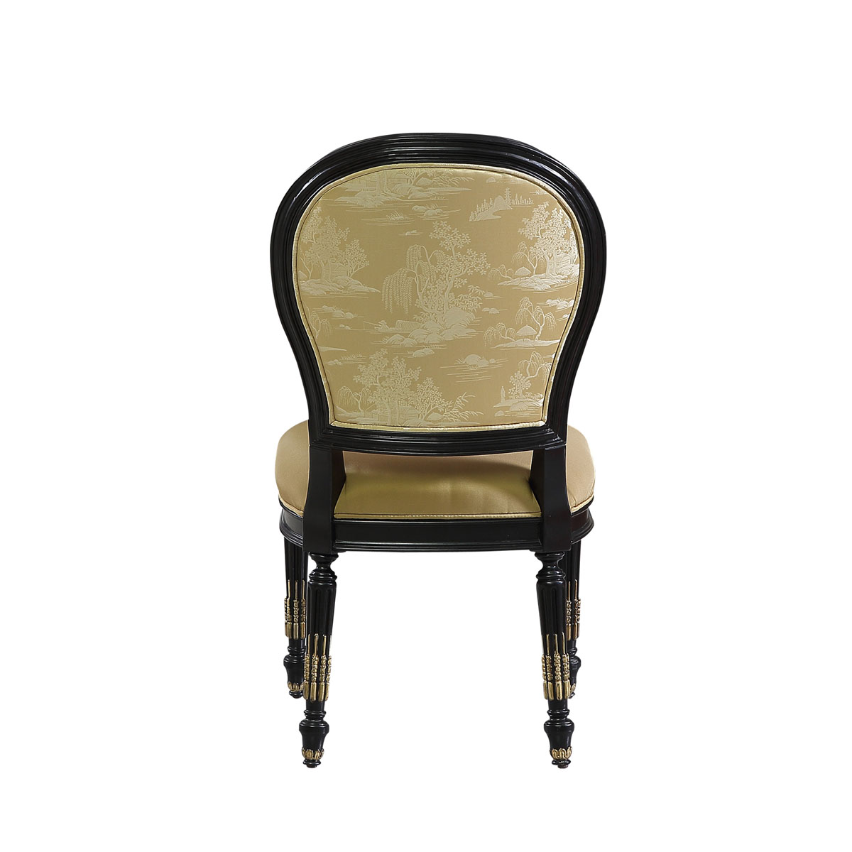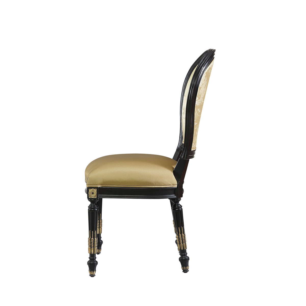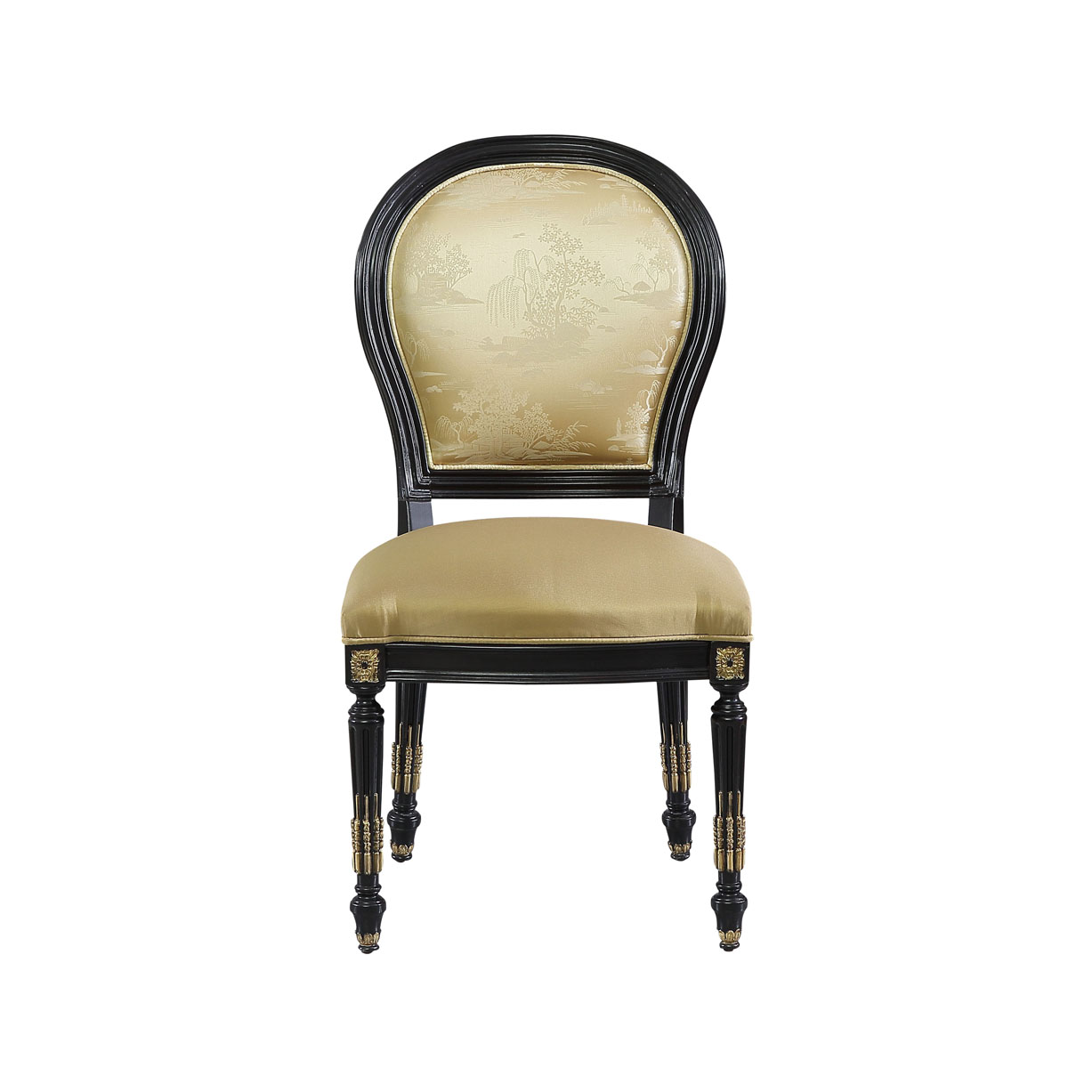 * 参考路易十六时期的古董造型设计,使用小提琴构造椅背和路易十六时期的建筑柱雕刻柱,配以精致的手工雕刻细节和涂金工艺、舒适的布艺面料和厚实柔软的填充物,是豪华系列凡尔赛玫瑰法式单椅的特色。