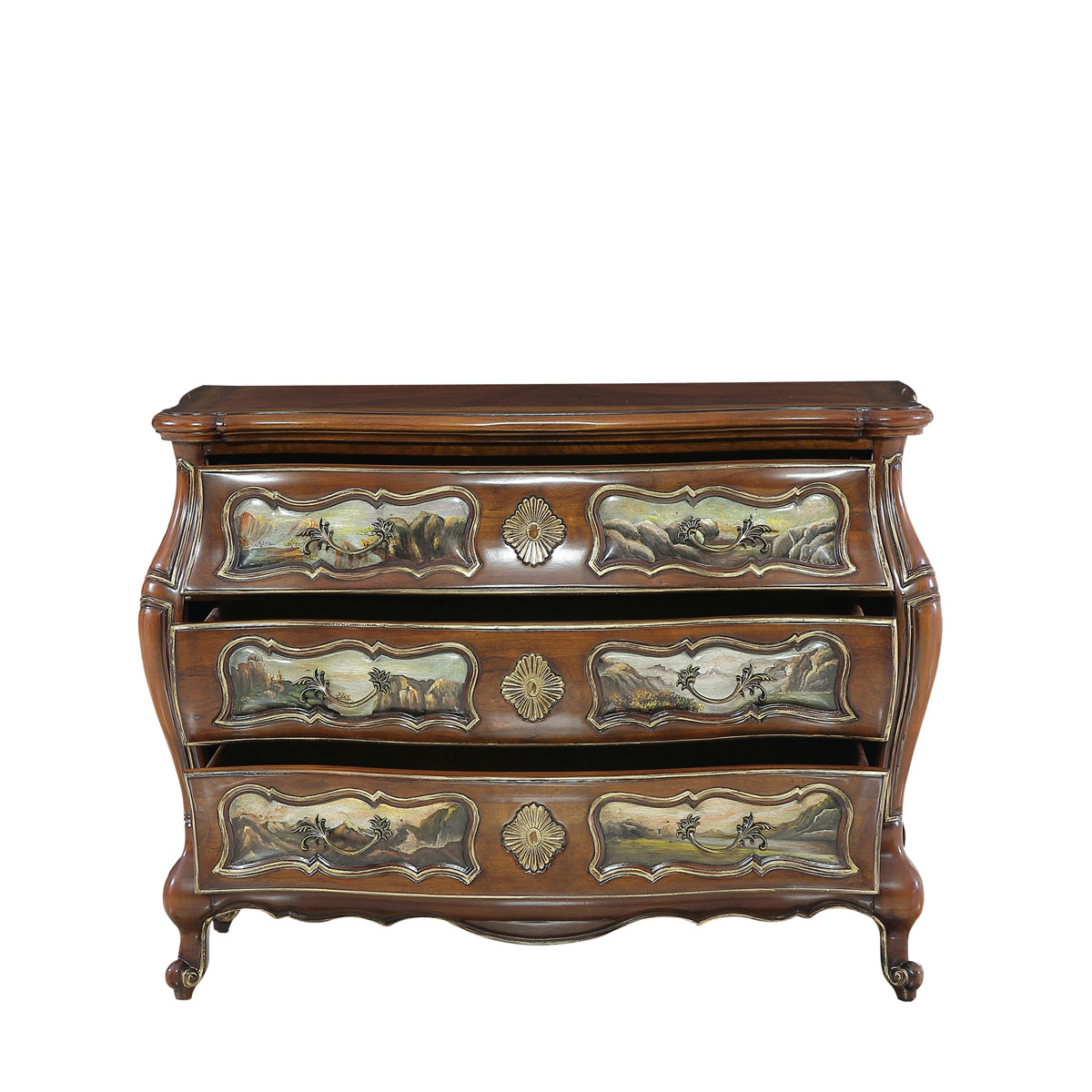* 浪漫的香颂犹如历史悠久的杜乐丽花园般,每每散发著其独特的韵味。为表现杜乐丽花园的休闲惬意,使用花环、藤蔓和卷叶造型的实木手工雕刻;配以木皮贴面和古铜色的树叶环形拉手,营造出浓情蜜意的法式生活空间。