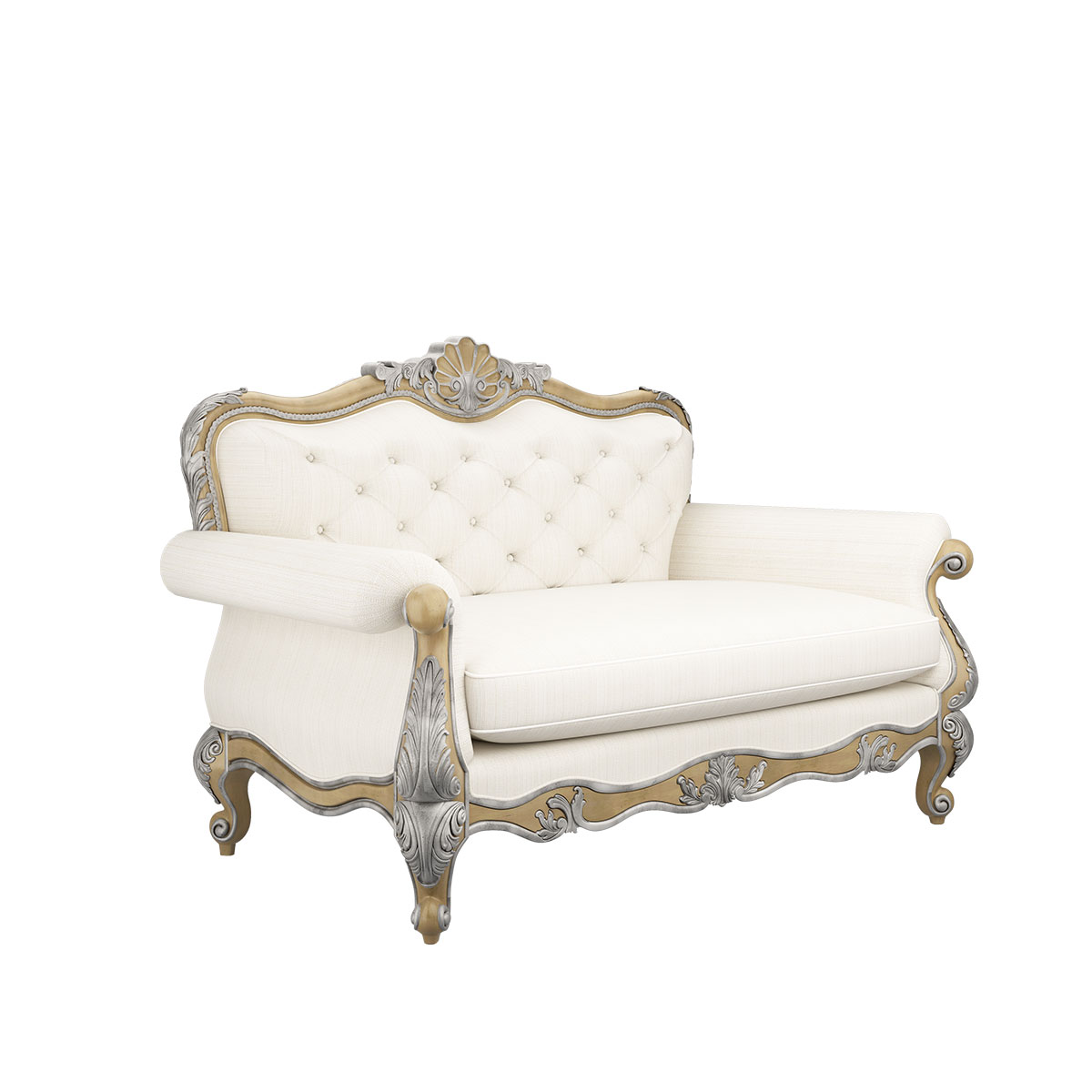 * 线条行的沙发造型犹如香颂般高低起伏的音律, 精致的实木雕刻是其中曼妙的点缀, 双重触感的软包部分带来杜乐丽花园的休闲惬意。