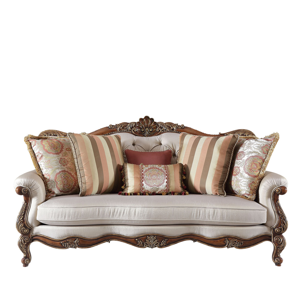 * 线条行的沙发造型犹如香颂般高低起伏的音律, 精致的实木雕刻是其中曼妙的点缀, 双重触感的软包部分带来杜乐丽花园的休闲惬意。