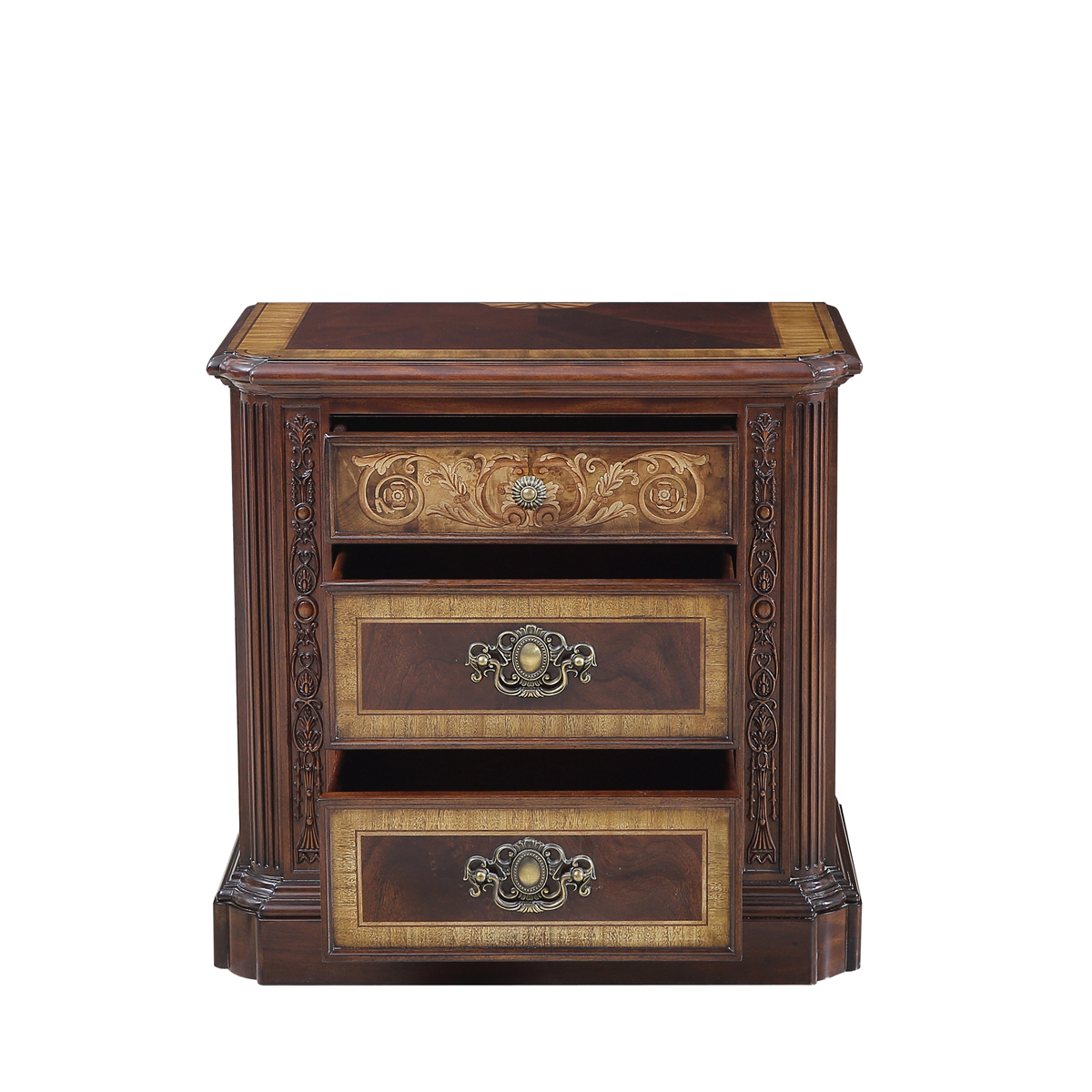 * 以现位于美国白宫中象征友谊和权力的坚毅桌(英语:Resolute desk)为设计意念, 以实木拼贴和雕刻工艺,将具有纪念意义的历史时刻融入其中,实用性的功能设计更是把艺术和生活完美结合, 是宫廷系列华盛顿美式床头柜的特色。