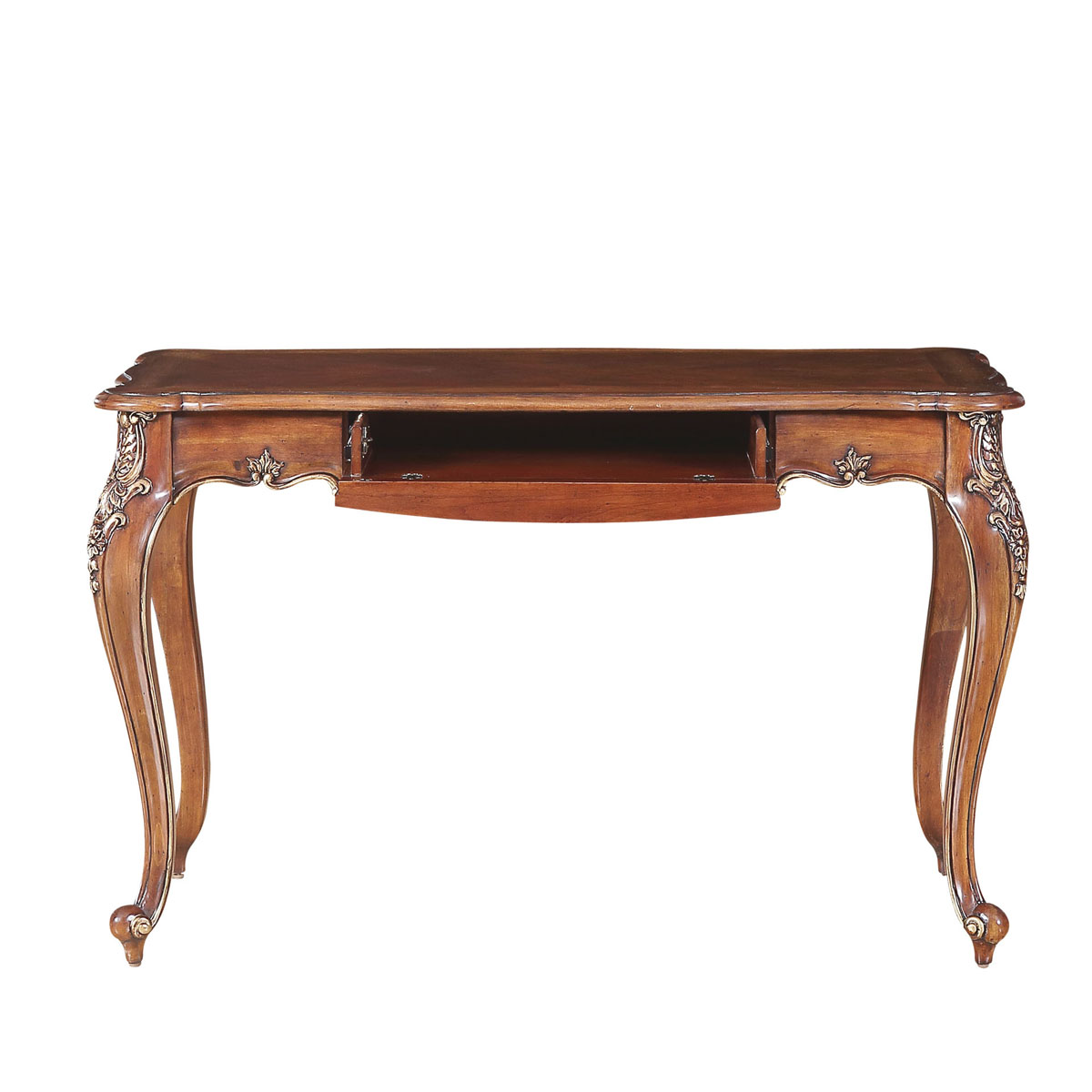 * 手工雕刻的藤蔓、阿坎瑟斯卷叶图案和弯脚设计 * 结实的连接技术 * 中央有1个键盘斗,内有线孔,可与键盘配合使用