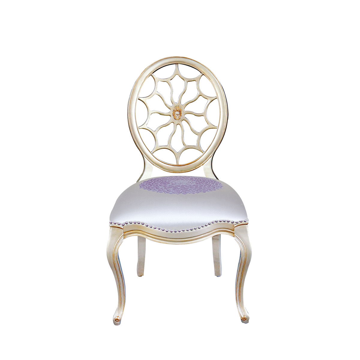 * 参考乔治三世时期的古董造型设计,使用轮子构造椅背和安妮王后腿,配以精致的手工雕刻细节和涂金工艺、布艺面料和厚实柔软的填充物,是豪华系列凡尔赛玫瑰法式扶手椅的特色。