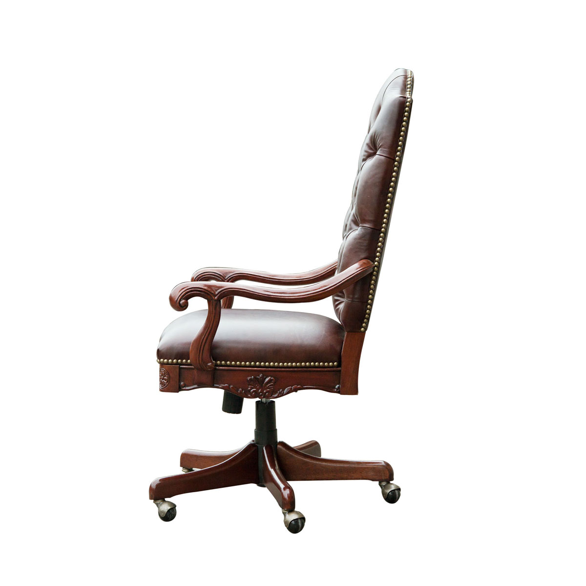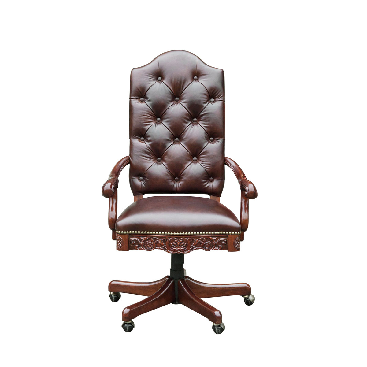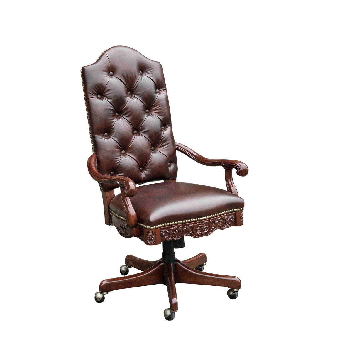 * 作为一个移民国家,各种文明在美国这片神奇的土地上兼容并蓄,在球盟会(中国)·网页登录上亦如是;这款美式办公椅用细腻的牛牛皮包裹着Camelbac Silhouette(驼峰轮廓)椅背,配上欧式球盟会(中国)·网页登录的经典表现形式——拉扣设计,不仅造型美观而且舒适实用;再点缀一些精致的花朵雕刻,办公空间也变得如此生意盎然;