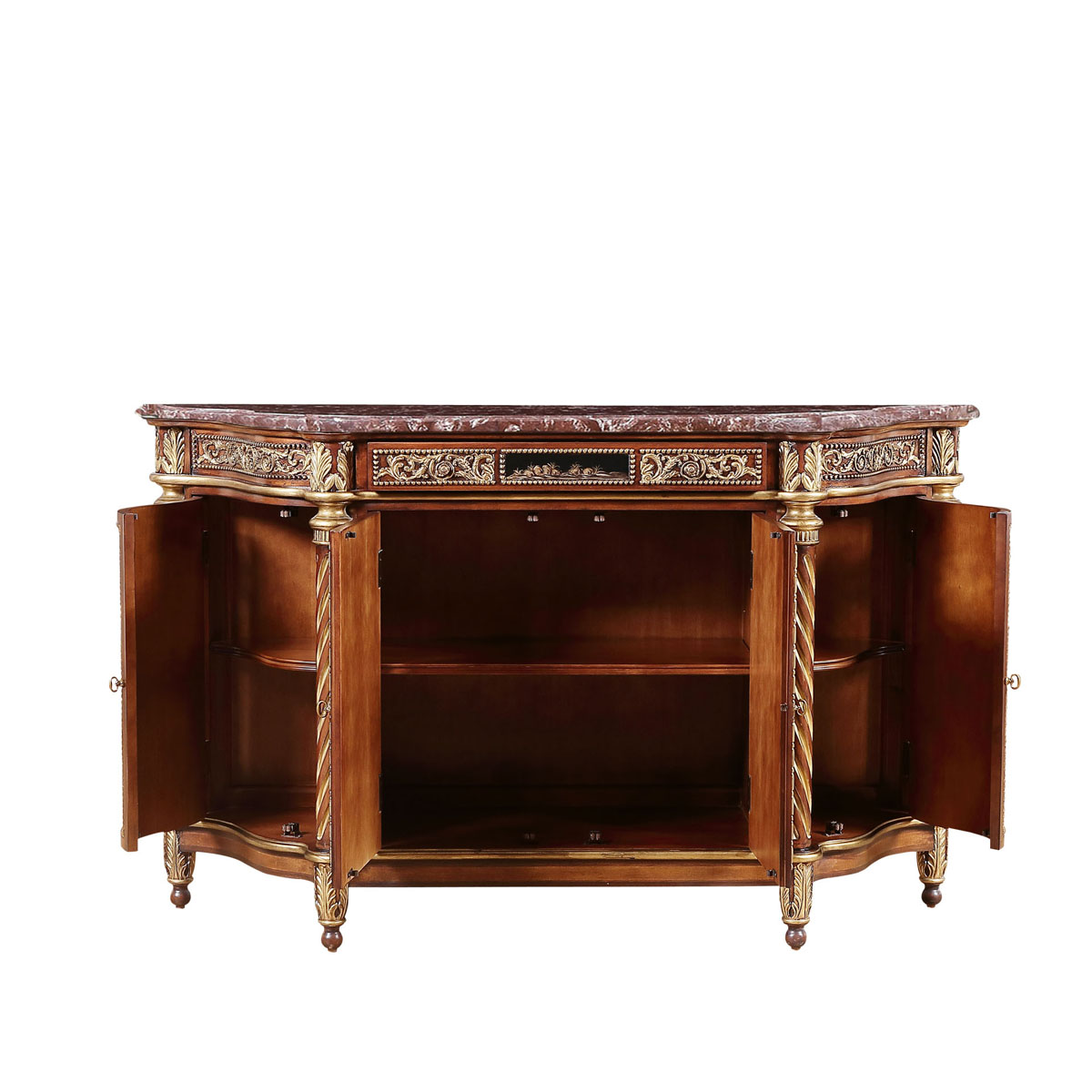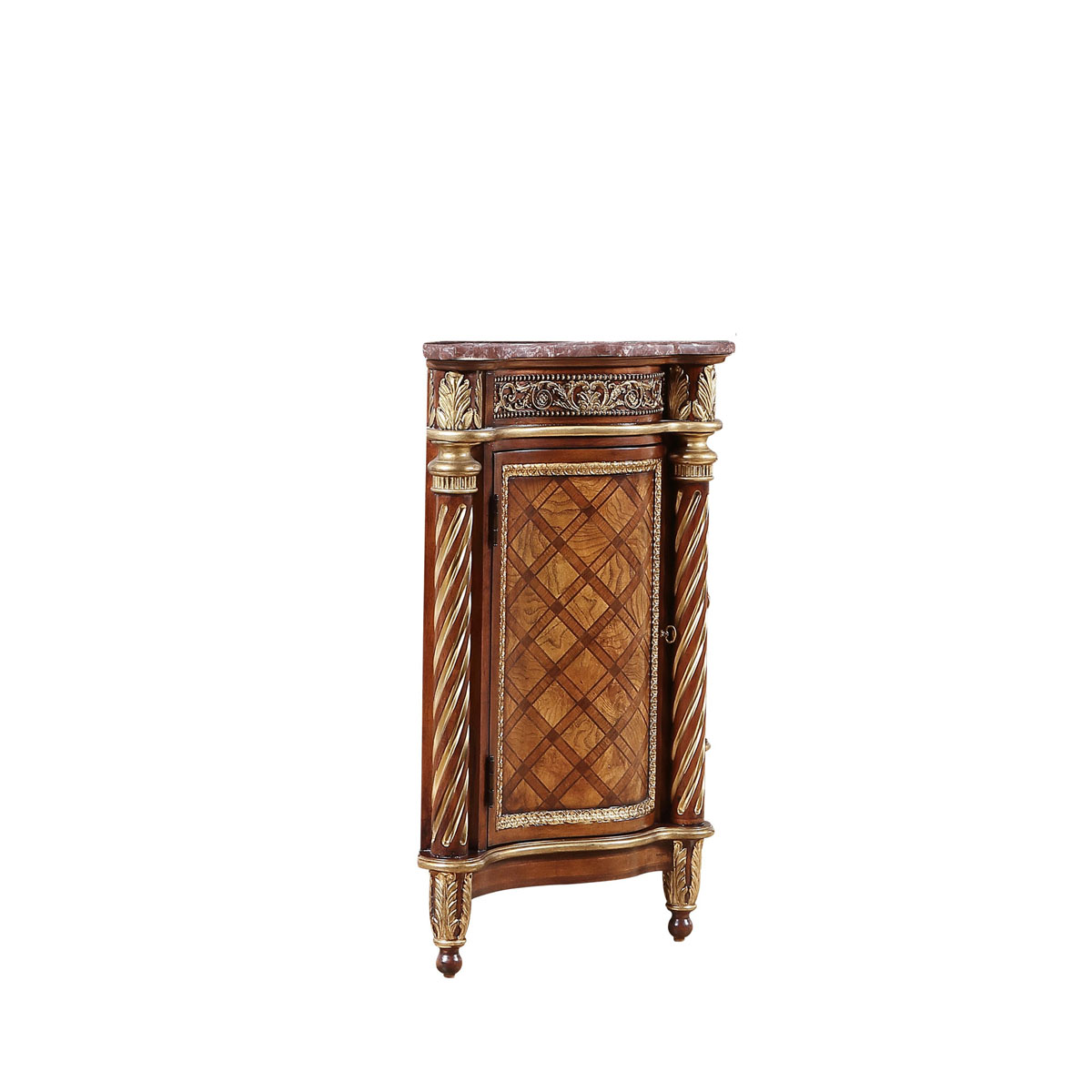 * 手工雕刻的工艺细节,结实的连接技术; * 光滑的花岗岩石表面; * 一个储物抽斗,其底部采用经典硬木实木滑轨设计; * 门内各有一块可调层板; * 底部装有可调脚钉;
