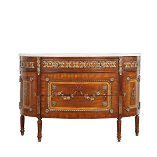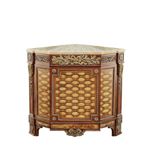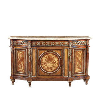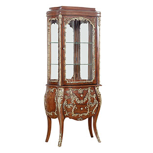 * 以 Louis XVI (路易十六)时期 Bombe Chest (邦贝柜)新古典风格为设计灵感,华丽的曲线轮廓配以细腻的雕刻,呈现出法国宫廷的浪漫。犹如罗马建筑般庄严的顶柜设计,更是把新古典风格的美表达得淋漓尽致。