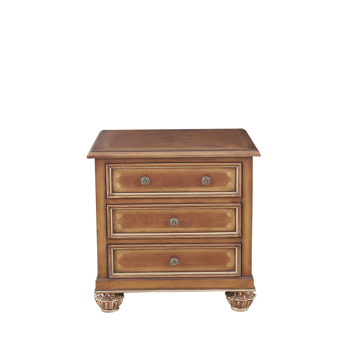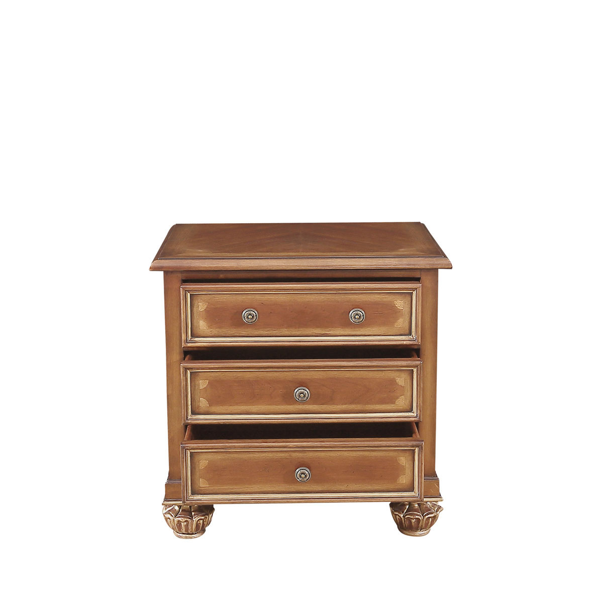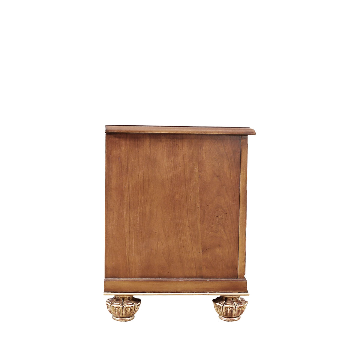 * 手工拼花藤蔓效果,用多种上等木皮拼制而成 * 三个储物斗,底部采用经典的硬木实木滑轨; * 脚底部装有可调脚钉
