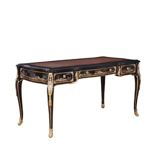 * 结合Louis XV (路易十五)时期洛可可风格雕刻弯腿与优雅的黑底金漆中国山水手绘,把法国凡尔赛宫中的经典呈现,表达法国宫廷的华丽与传承。