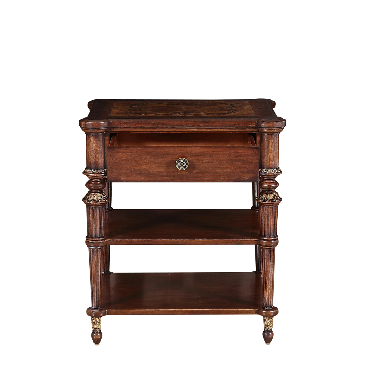 * 一个储物抽斗,底部装有硬木实木滑轨; * 底部的层板可放置家庭装用品; * 脚底部装有可调整脚钉。