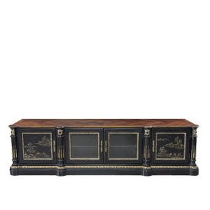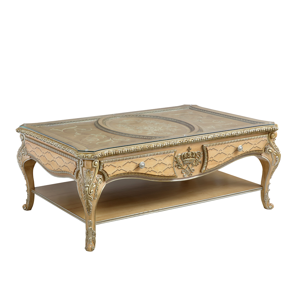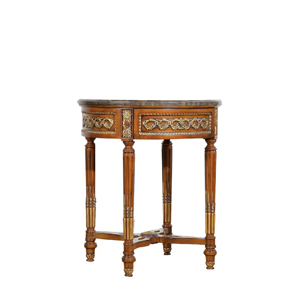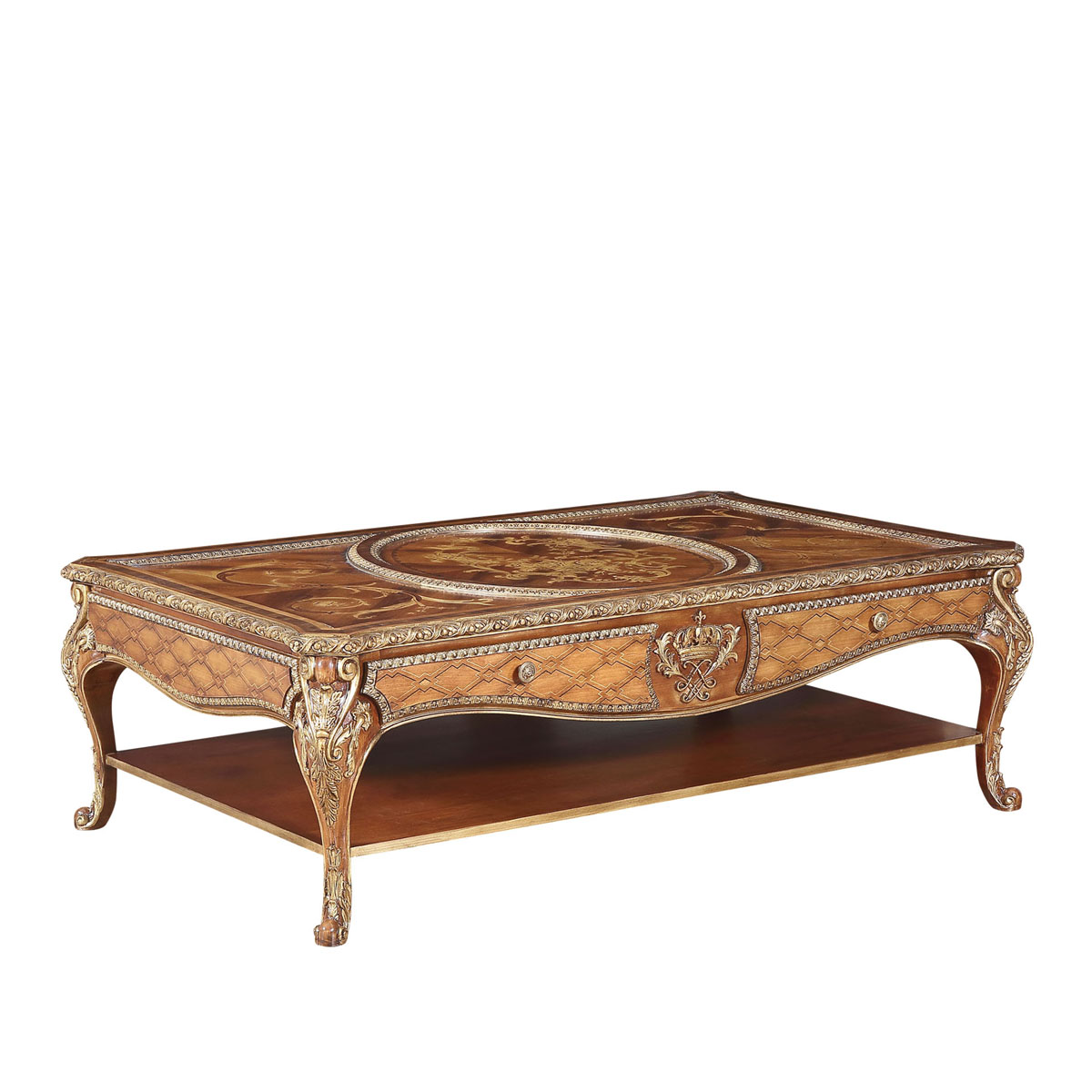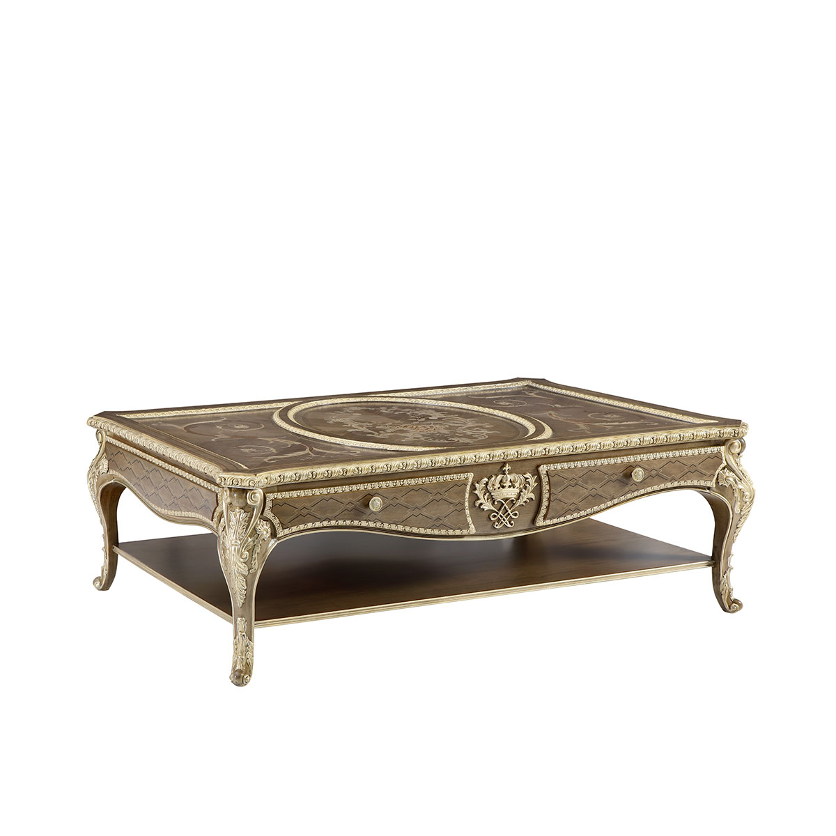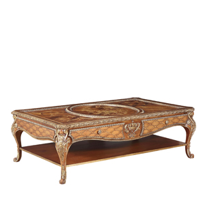 * 结合代表“太阳王” Louis XIV (路易十四)的图腾、Louis XV (路易十五)时期洛可可风格雕刻弯腿与Louis XVI (路易十六)时期新古典风格实木簿片镶嵌图腾,把法国凡尔赛宫中的经典呈现,表达法国宫廷的华丽与传承。