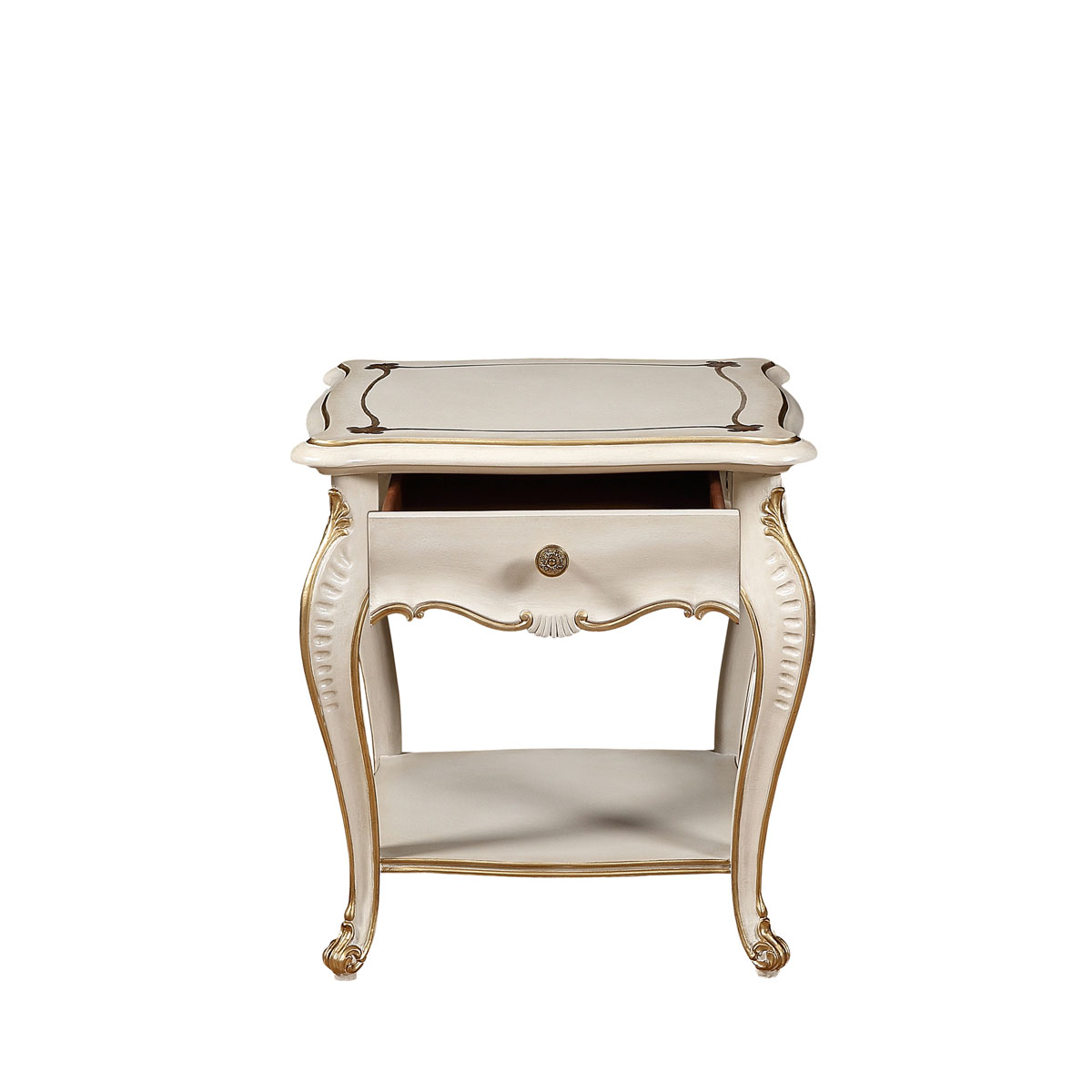 * 手工雕刻的工艺细节结实的连接技术18道以上的多步骤油漆工艺 * 一个储物抽斗,其底部采用经典的硬木实木滑轨 * 底部的层板可放置家庭装饰品; * 脚可拆装 * 底部装有四个调整脚钉;