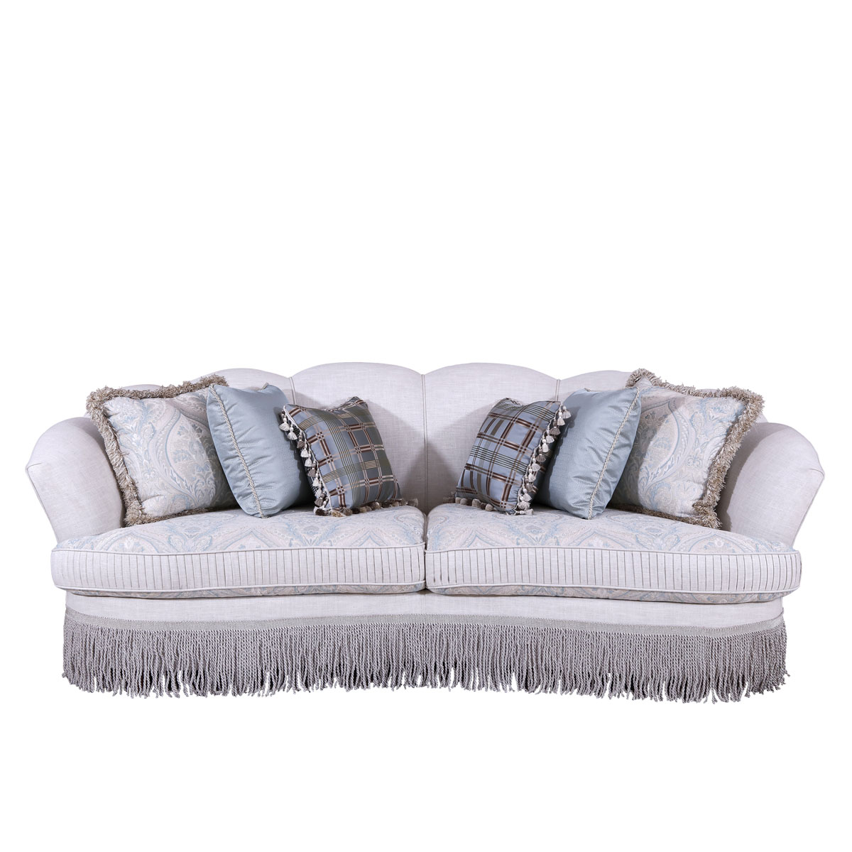 * 坐垫和靠背包有丰厚的填充物; * 标配抱枕:480*480 2个 550*550 4个 * 提供多种面料可供选择;