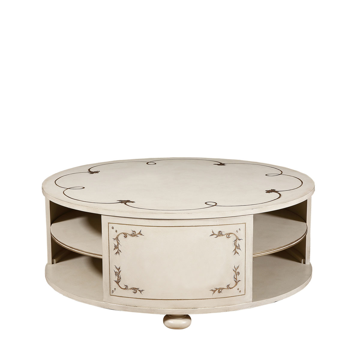 * 手工木皮拼贴工艺; * 三处开放式设计,内有一块固定层板; * 脚底部装有可调脚钉;