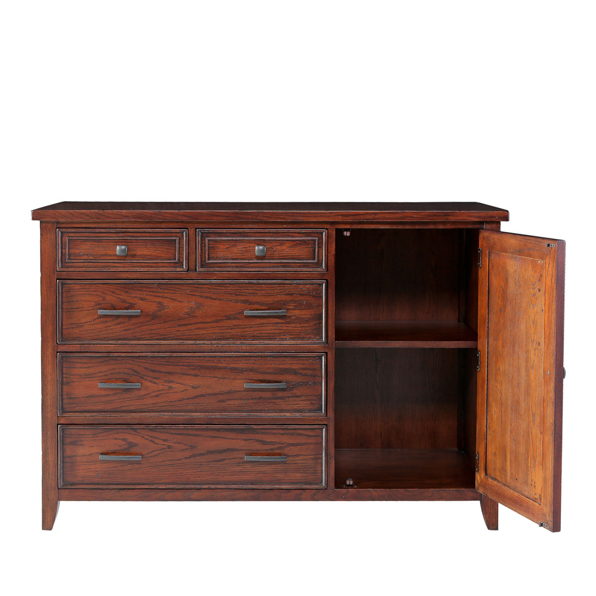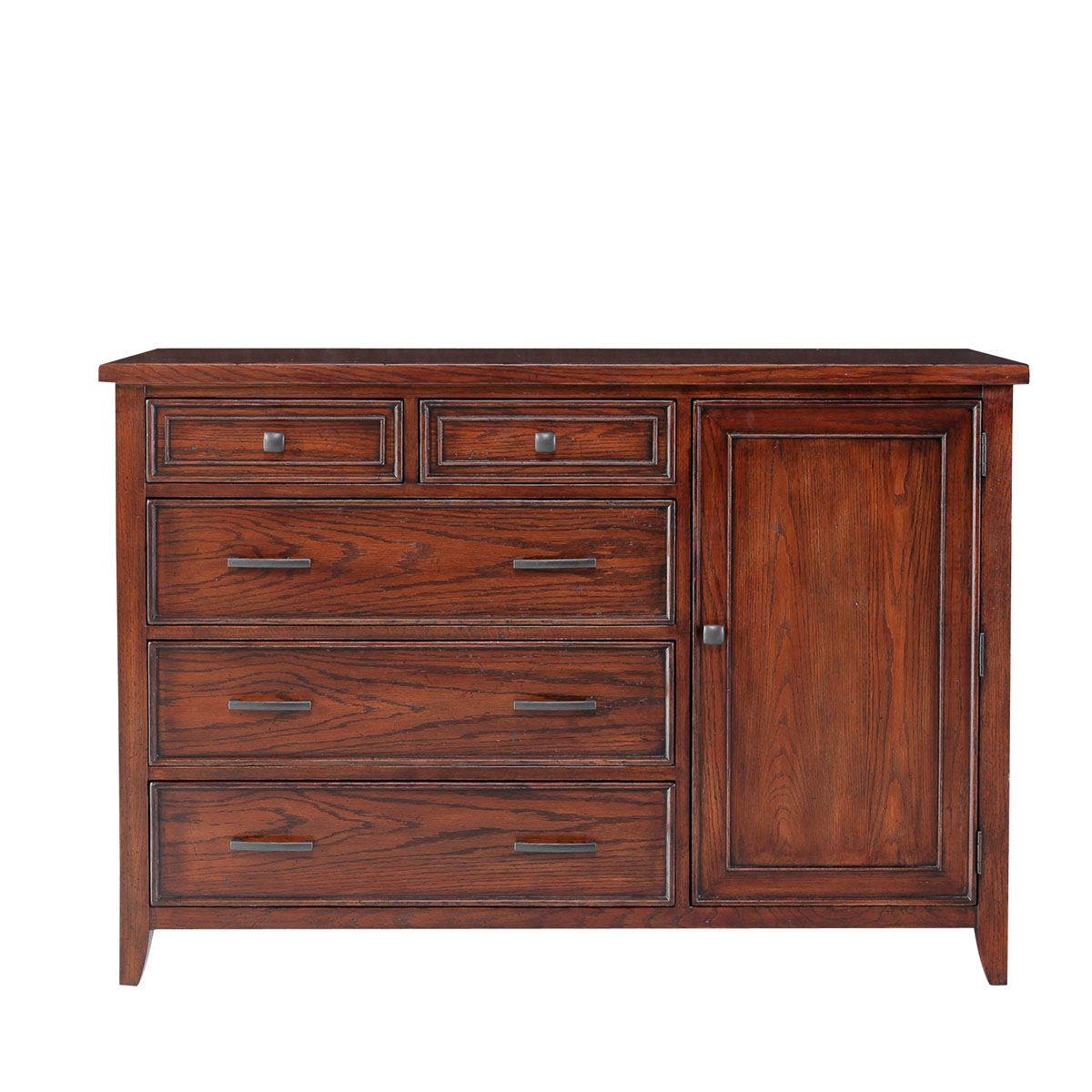 * 五个储物抽斗,其底部采用硬木实木滑轨 * 木框门板,门内一块木层板,可自由调节储存空间; * 脚底部装有可调脚钉