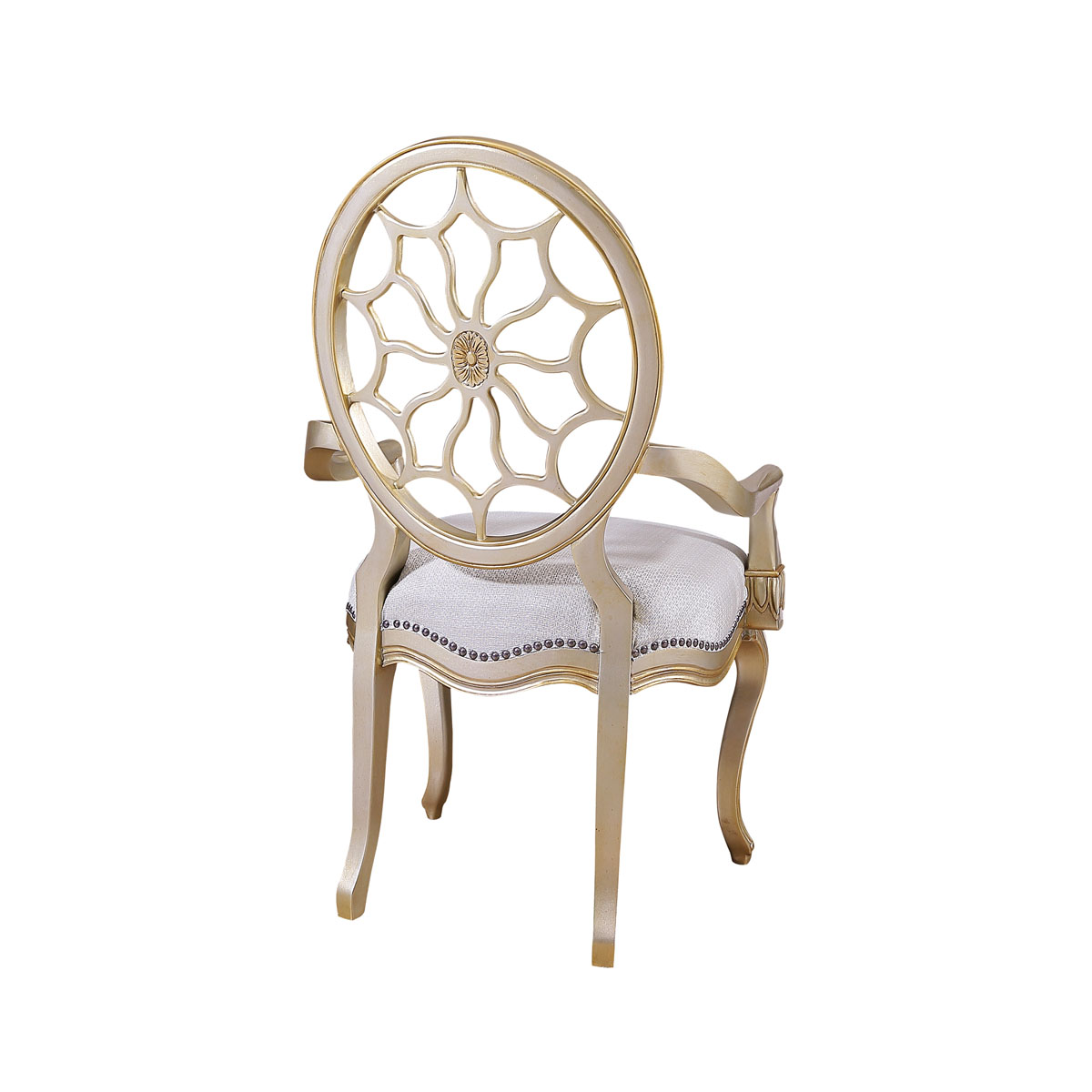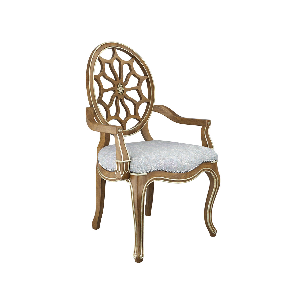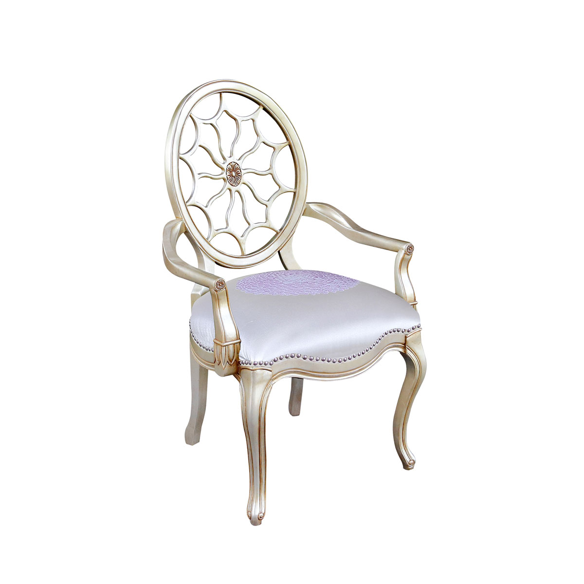 * 参考乔治三世时期的古董造型设计,使用轮子构造椅背和安妮王后腿,配以精致的手工雕刻细节和涂金工艺、布艺面料和厚实柔软的填充物,是豪华系列凡尔赛玫瑰法式扶手椅的特色。