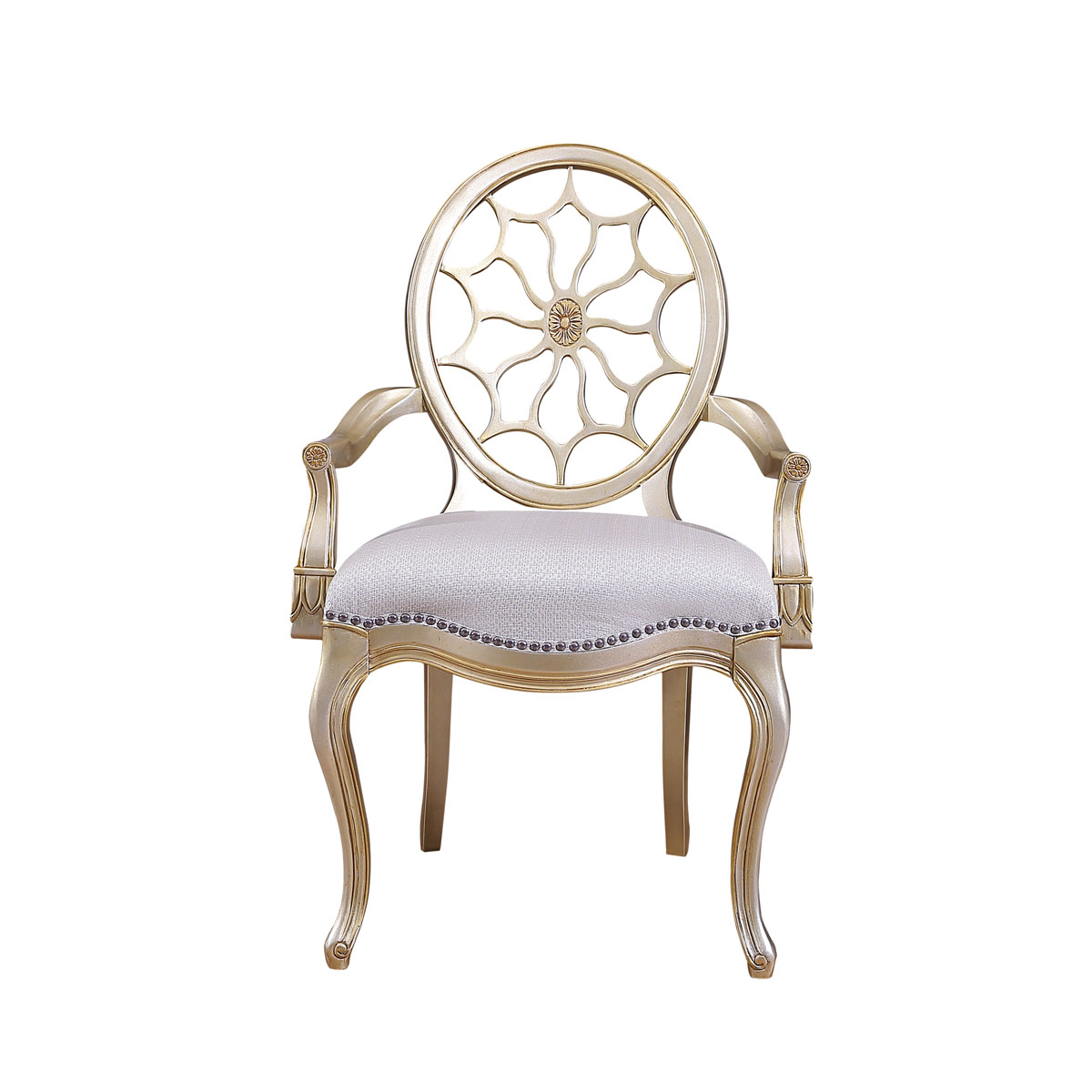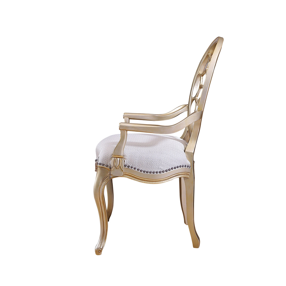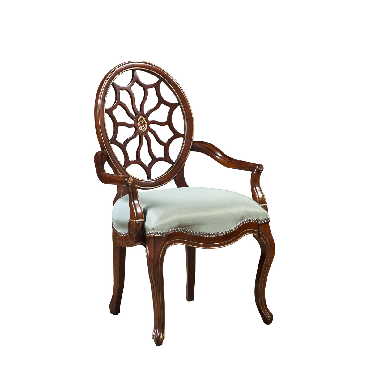 * 参考乔治三世时期的古董造型设计,使用轮子构造椅背和安妮王后腿,配以精致的手工雕刻细节和涂金工艺、布艺面料和厚实柔软的填充物,是豪华系列凡尔赛玫瑰法式扶手椅的特色。
