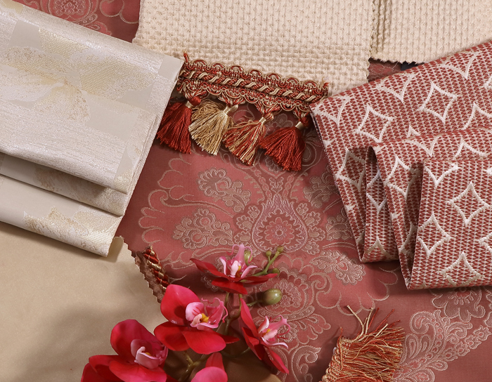 触感细腻柔软的优质布艺,大胆的红色,温暖而热情,当中朵朵绽放的花形如团团烈火,闪耀炽热光芒,传递着生活的热度。