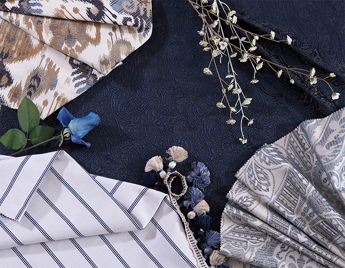米白色调中加入适当比例的棕色,以天然的古朴抵抗岁月的痕迹;蓝色刺绣提花栩栩如生,精致细腻中糅着典雅的矜持,承袭着悠久的传统工艺,绣制华美艺术。