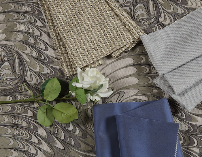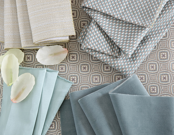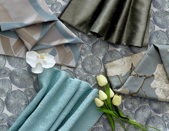 加了灰色调的尼加拉蓝多了几分静谧柔美,来自度假天堂的颜色,舒缓放松;丝缎布艺具有非常美丽的光泽感和层次感更显质感和活力。